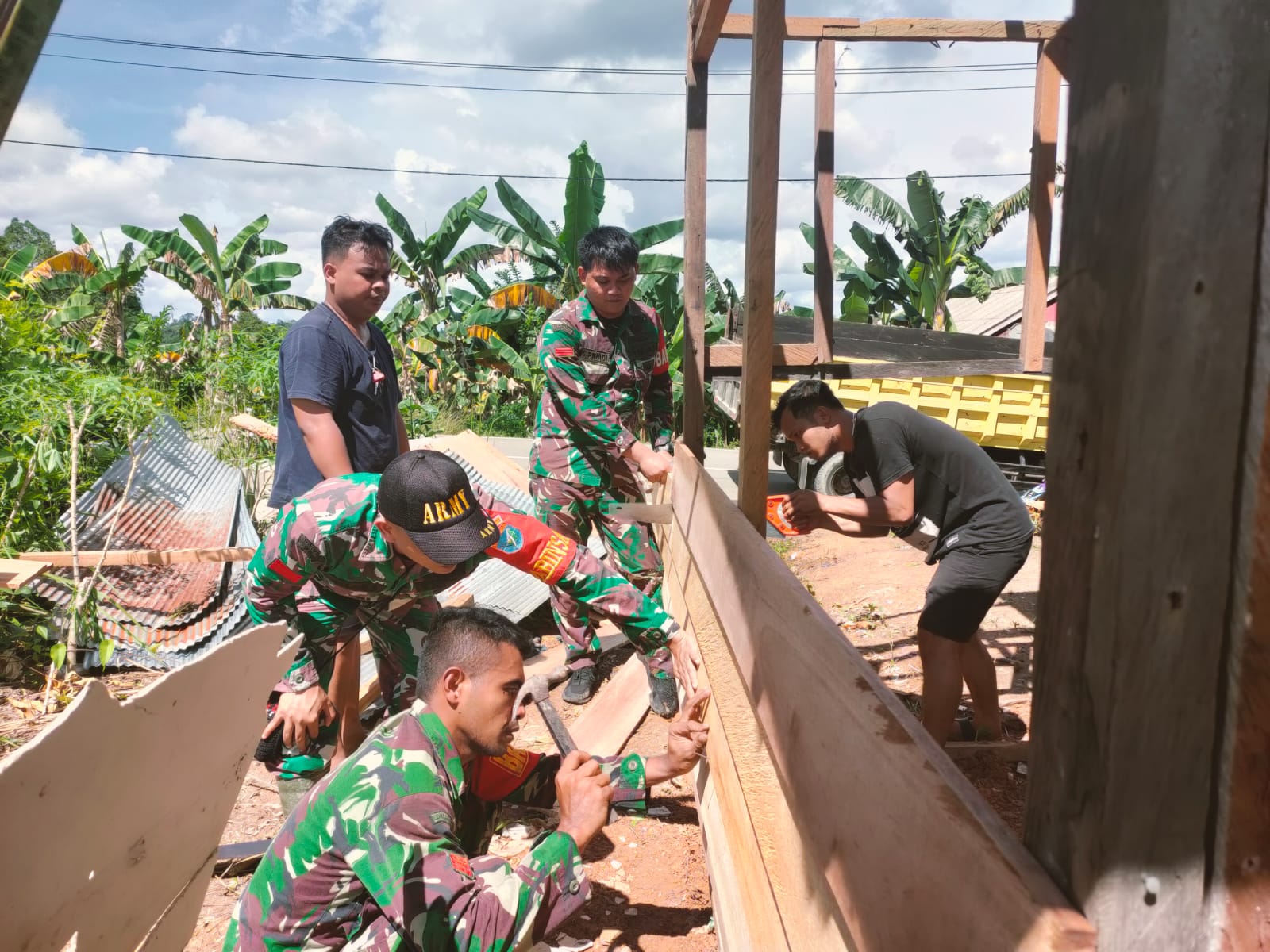 Babinsa Koramil 03/Teweh Tengah Bersama SMI Batara Renovasi Rumah Milik Warga Kurang Mampu