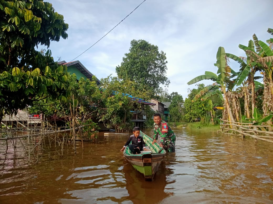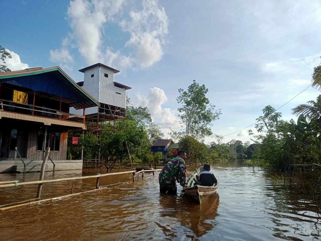 Babinsa Koramil 1013-08/Laung Tuhup Pantau Wilayah Akibat Luapan Air Sungai Di Desa Binaan