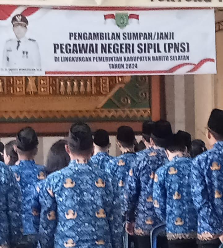 Acara pengambilan sumpah janji ini bertujuan agar para PNS mempunyai komitmen dan tekad yang kuat serta memahami isi sumpah/janji untuk melaksanakan tugas-tugas pemerintahan dalam mewujudkan pelayanan birokrasi yang lebih baik. Diharapkan, para PNS yang baru dilantik dapat menjalankan tugas dan tanggung jawab mereka dengan integritas serta dedikasi tinggi guna mewujudkan pelayanan publik yang berkualitas dan efisien bagi masyarakat Kabupaten Barito Selatan.( Edi Yanto)