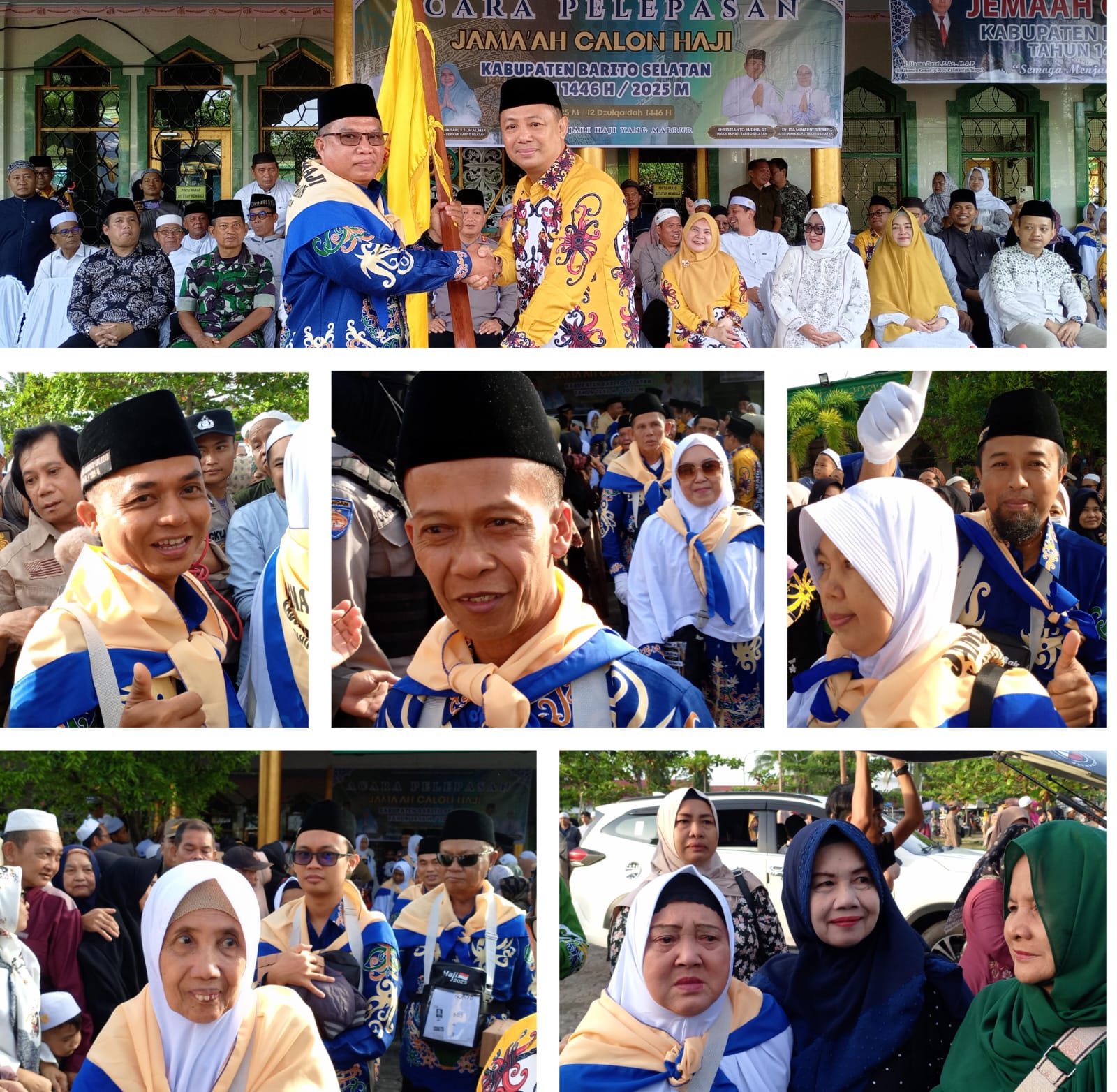 Tribunkalimantan. com// Buntok- Ratusan jamaah calon haji (JCH) Kabupaten Barito Selatan, Kalimantan Tengah, telah dilepas dalam sebuah upacara penuh haru dan khidmat di Masjid Agung Baiturahman Buntok pada Sabtu, 10 Mei 2025. Sebanyak 129 JCH diberangkatkan menuju Tanah Suci Makkah untuk menunaikan ibadah haji tahun 1446 H/2025 M, diiringi doa dan air mata haru dari keluarga, kerabat, dan ribuan warga yang hadir. Suasana penuh emosional ini menandakan betapa besar makna perjalanan spiritual ini bagi masyarakat Barito Selatan.oada hari Sabtu 10/05/2025 Pagi