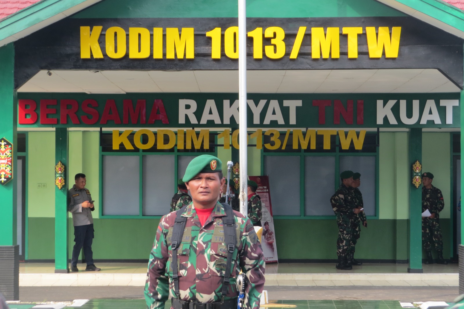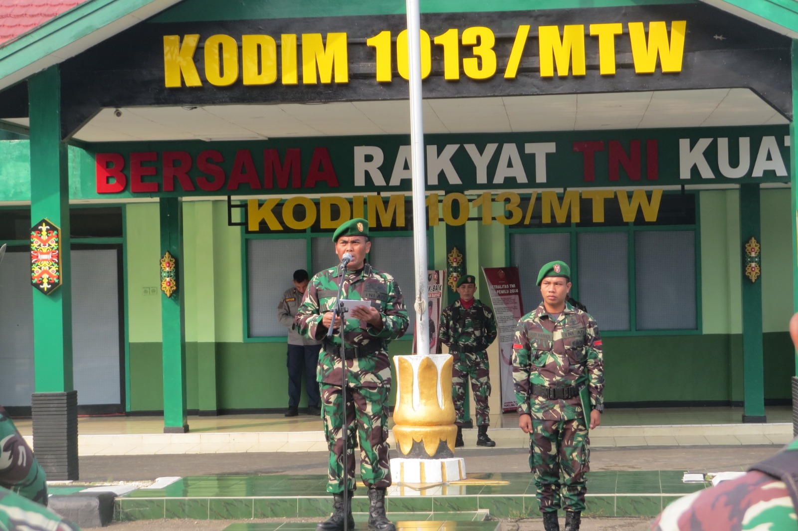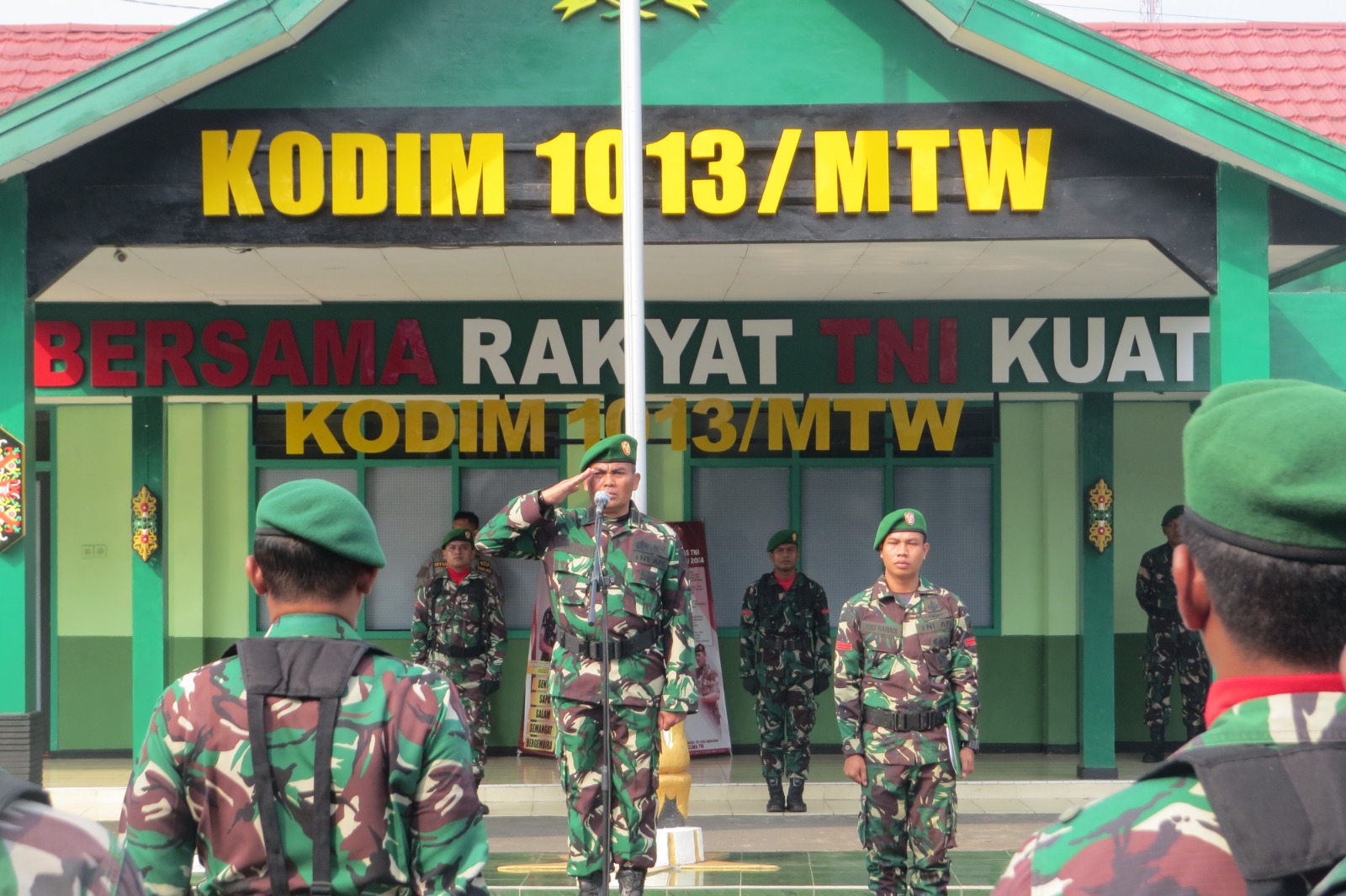 Sedangkan komandan upacara dipimpin Lettu Czi. Ahmad Munir Pasiter Kodim 1013/Mtw serta Perwira Upacara oleh Kapten Inf. Trio Pramono Pasi Ops Kodim 1013/Mtw.