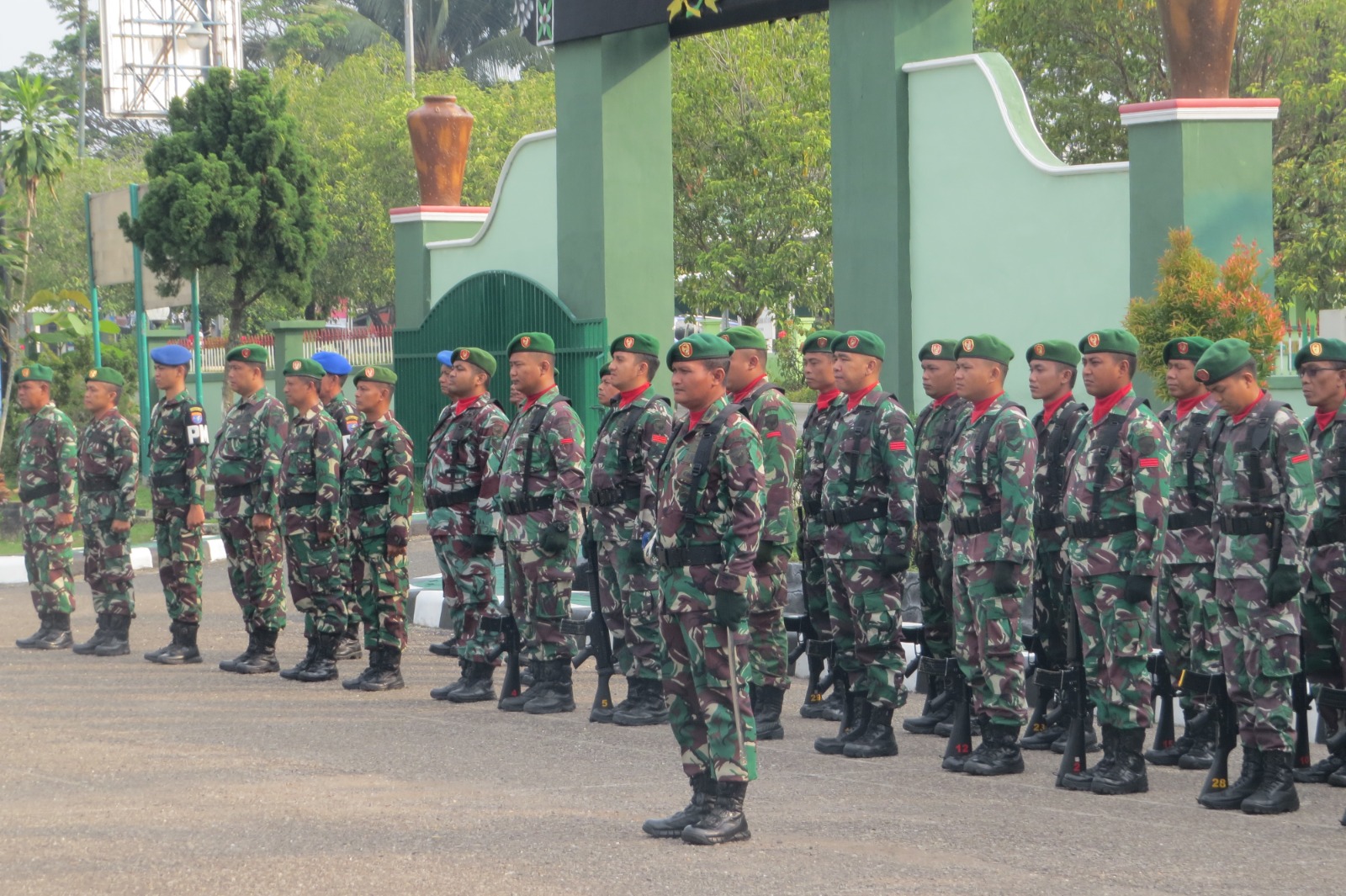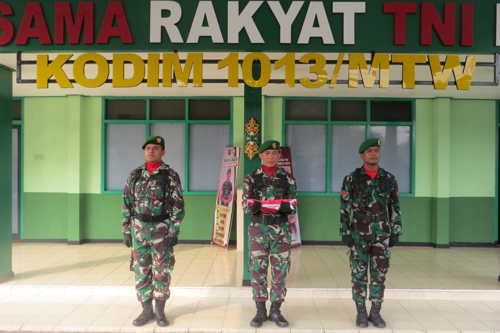 Upacara yang berlangsung khidmat, aman dan lancar ini diikuti Prajurit Kodim 1013/Mtw, Anggota Subdenpom XII/2-3 Mtw serta Anggota Minvet XII/20 Mtw .