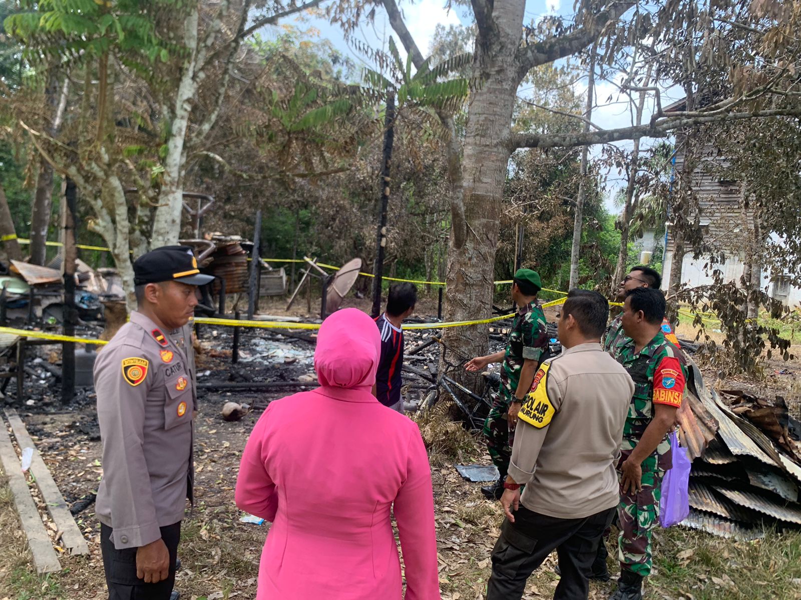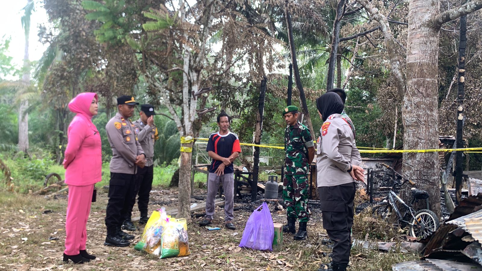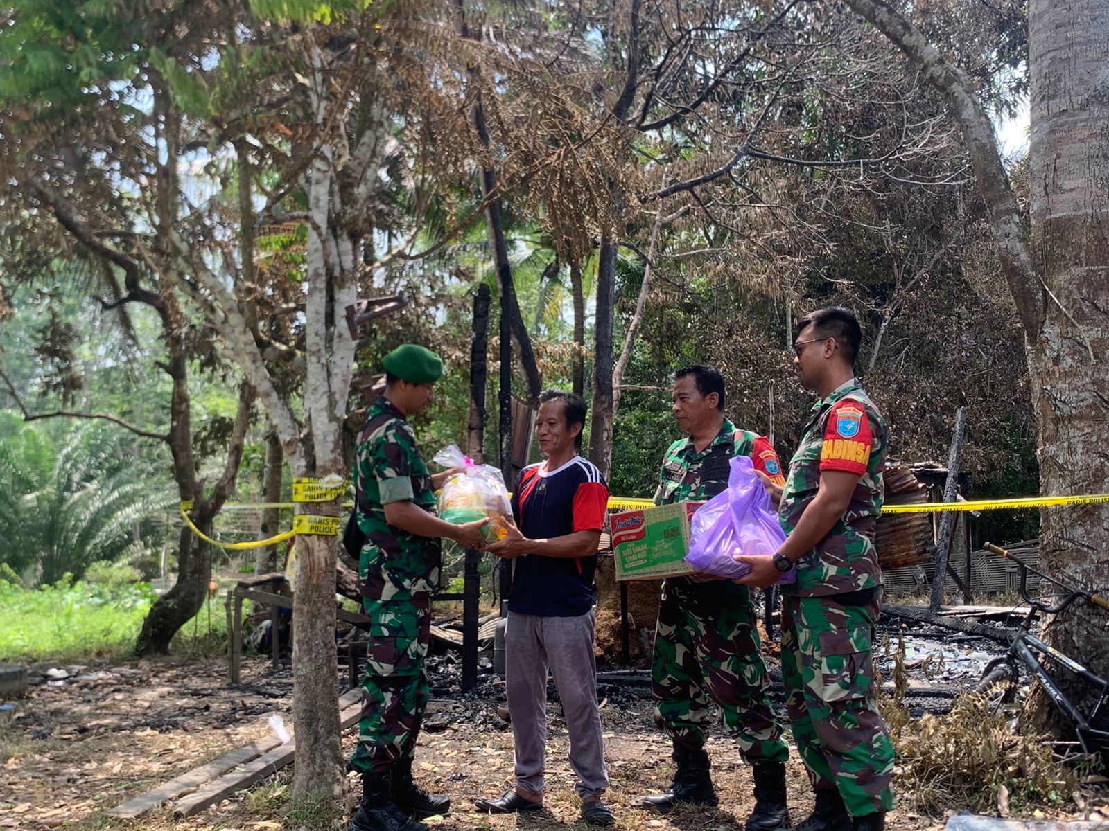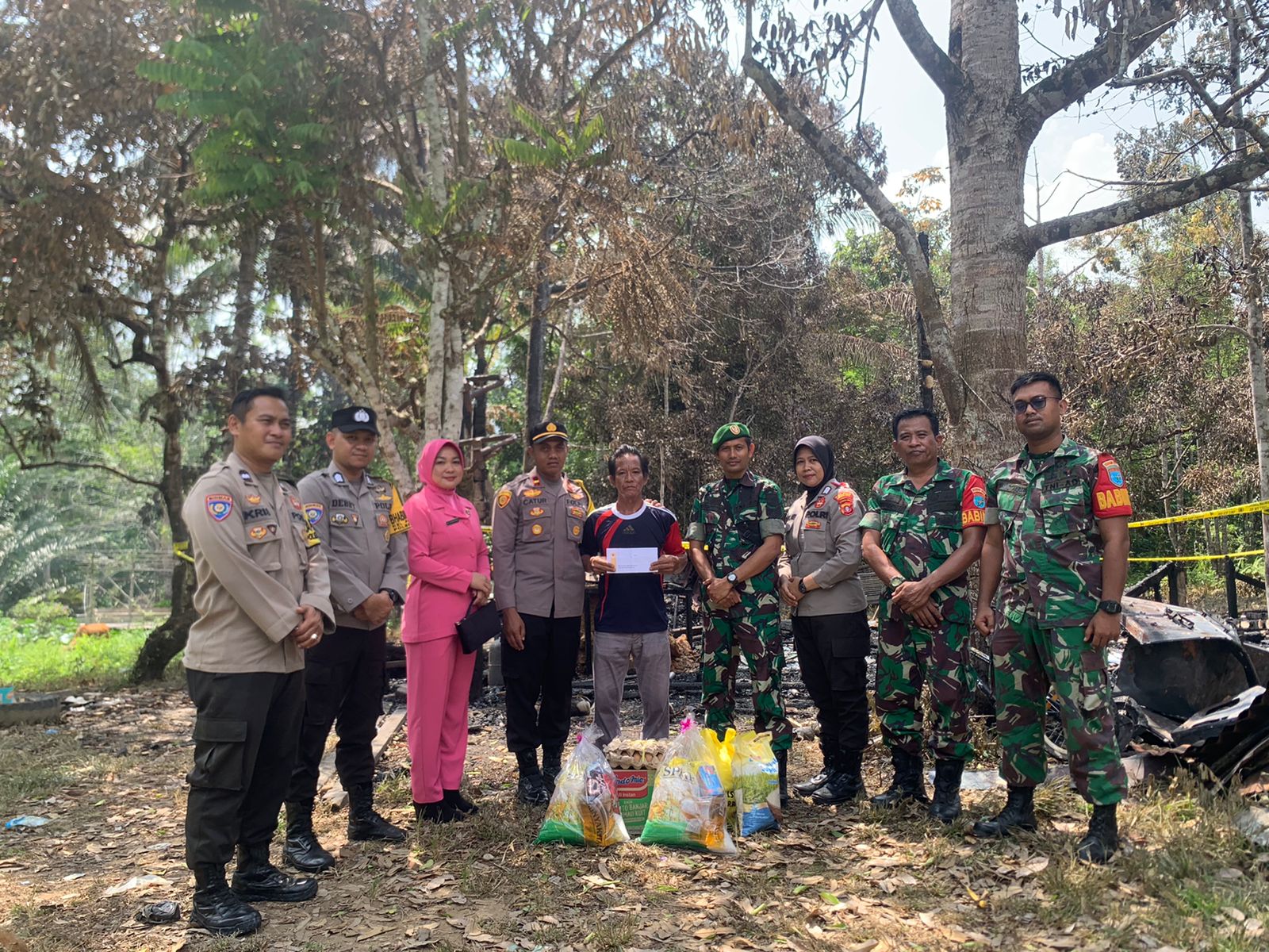 “Bantuan ini tidak seberapa tetapi ini sebagai wujud kepedulian TNI-Polri di tengah musibah kebakaran yang di alami keluarga bapak Taslim,”Ujar Danramil
