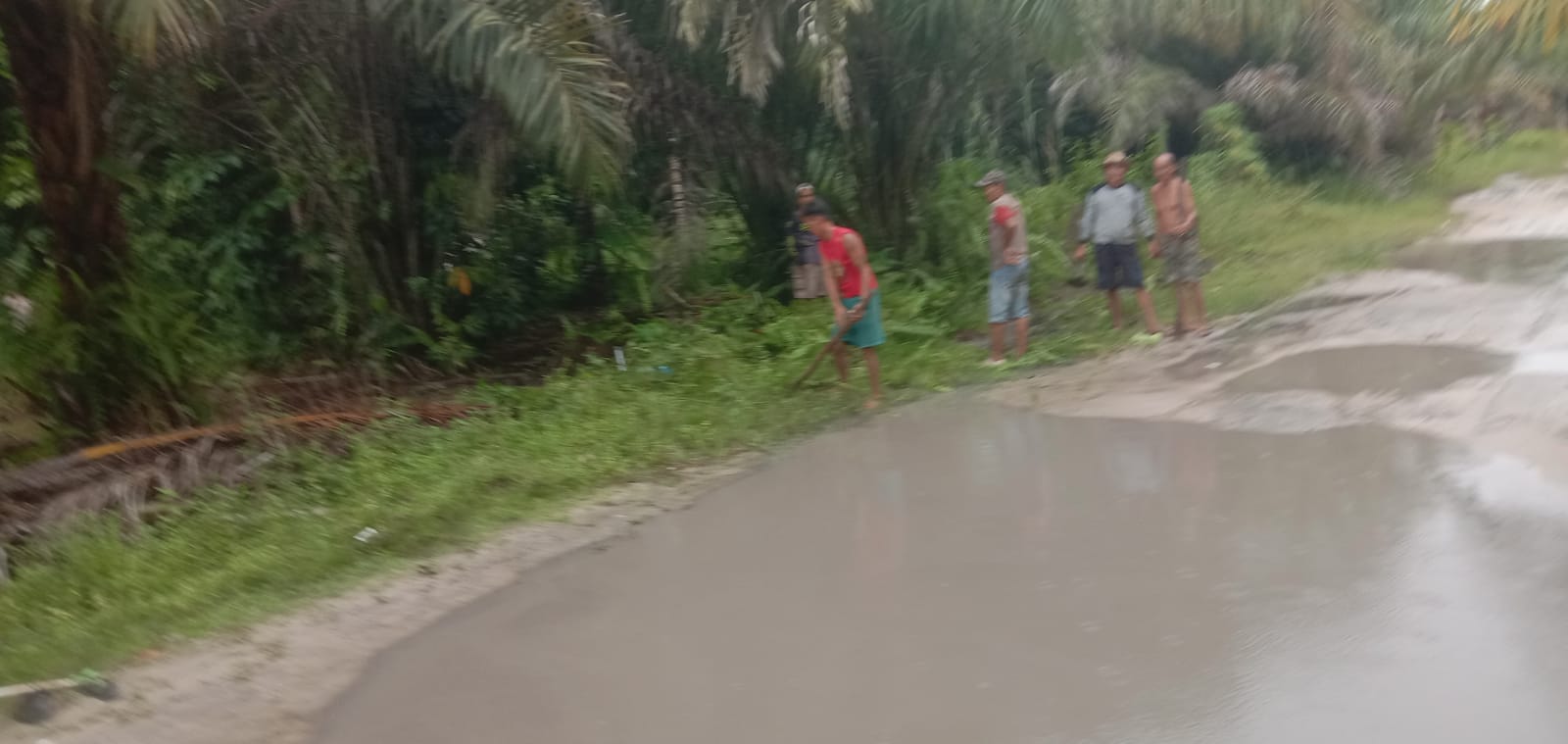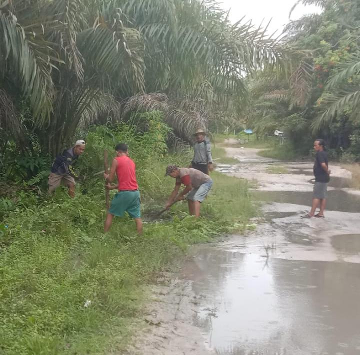 “Adapun kegiatan gotong royong ini dilakukan agar akses ke jalan poros bisa dinikmati dan dilewati oleh warga masyarakat, sekitarnya