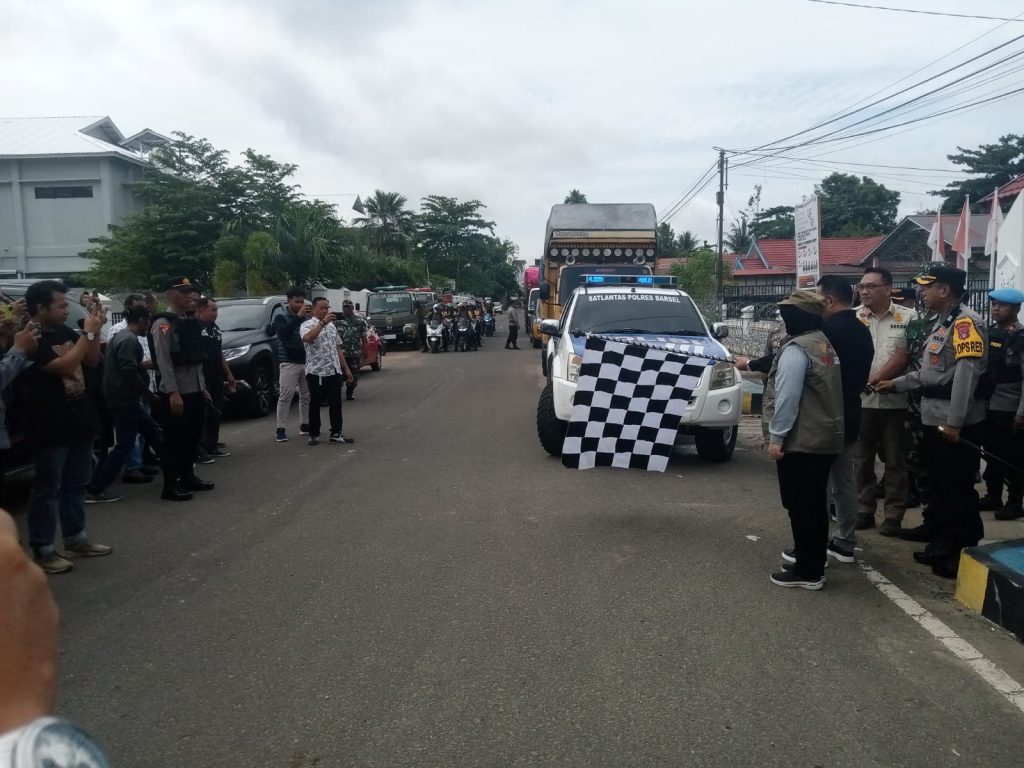 Tribunkalimantan.com||Buntok-Pemerintah Kabupaten Barito Selatan, Kalimantan Tengah, memulai pendistribusian logistik Pemilu Tahun 2024. Acara pelepasan diadakan di halaman Kantor KPU Kabupaten Barito Selatan pada Minggu,( 11/02/2024). Pelepasan dihadiri oleh Pejabat Bupati Barito Selatan H. Deddy Winarwan yang diwakili oleh Sekda Barsel Eddi Purwanto, Kapolres Barsel AKBP Asep Bangbang Saputra, dan sejumlah tokoh terkait.