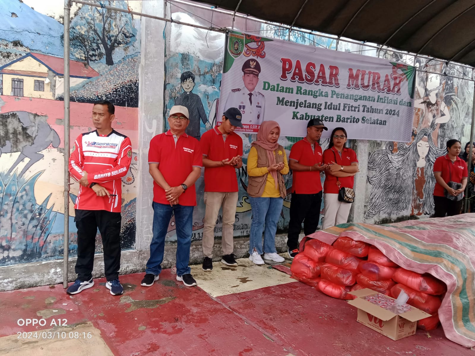 Dalam sambutannya, Asisten I Yoga Prasetianto Utomo mengatakan, “Assalamualaikum warahmatullahi wabarakatuh pada kesempatan pagi hari ini tanggal 10 Maret 2024 bertepatan di lapangan Batuah kita dari Pemerintah Kabupaten Barito Selatan beserta unsur Forkopimda dan OPD terkait baik dari Dinas Perdagangan, Koperasi, dan juga Dinas Ketahanan Pangan dan PD lainnya, kami bersama-sama untuk melaksanakan gerakan pasar murah dan gerakan pangan murah yang dilaksanakan.”
