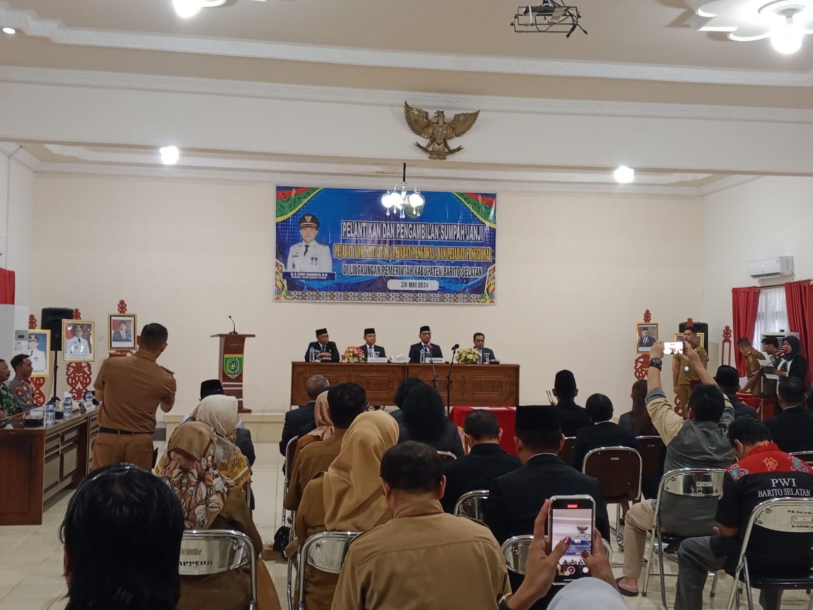 Tribunkalimantan .comBuntok Barito Selatan -Pada tanggal 28 Mei 2024, telah dilaksanakan pelantikan dan pengambilan sumpah jabatan untuk pejabat administrator, pejabat pengawas, dan pejabat fungsional di lingkungan Pemerintah Kabupaten Barito Selatan. Acara ini berlangsung di Aula Bappeda dan dihadiri oleh Sekretaris Daerah (Sekda), unsur Forkopimda, Organisasi Perangkat Daerah (OPD) di lingkungan Pemerintah Daerah, serta seluruh tamu undangan. Acara tersebut dipimpin oleh Dr. H. Deddy Winarwan, M.Si.28/5/2024.