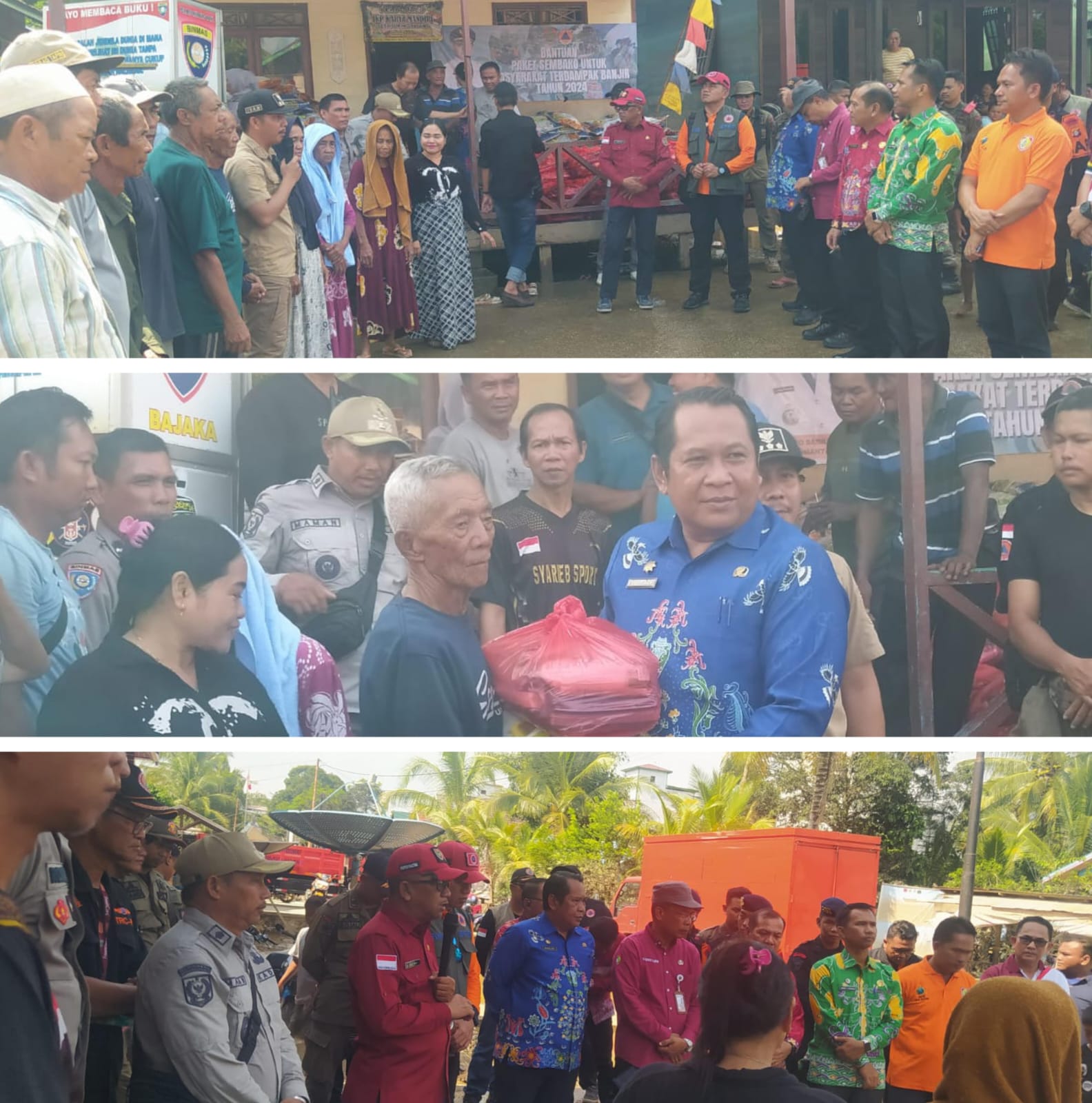 Sekda Kalteng Dan Pj Sekda Murung Raya, Salurkan Bantuan Pasca Banjir Kepada Warga Desa Juking Pajangr