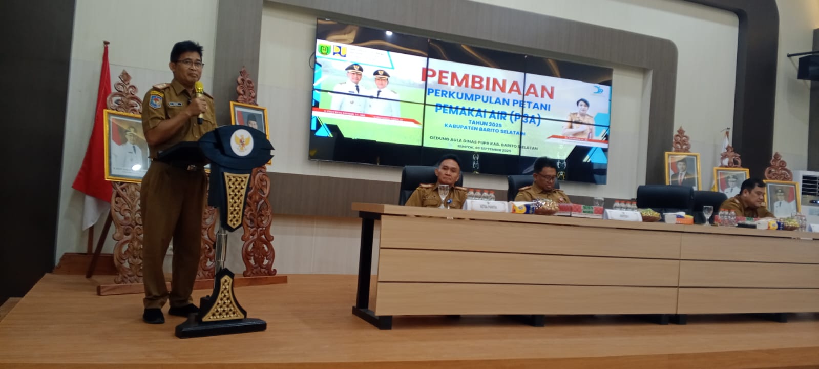 Tribunkalimantan .Com  //Buntok, Pemerintah Kabupaten Barito Selatan(Barsel) terus berupaya meningkatkan sinergi dengan Perkumpulan Petani Pemakai Air (P3A) dalam pengelolaan sistem irigasi. Hal ini diwujudkan melalui kegiatan pembinaan yang diselenggarakan di Aula Dinas PUPR.pada 02/10/2025